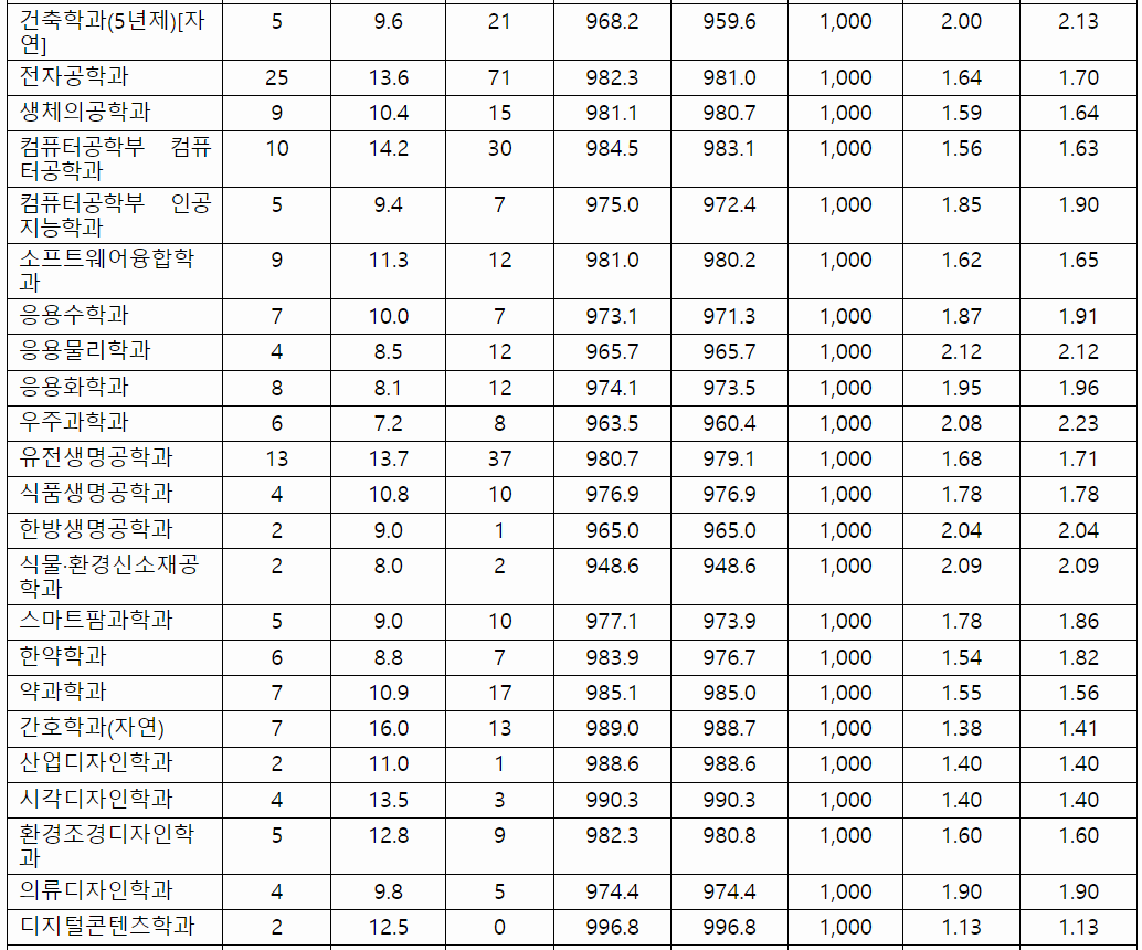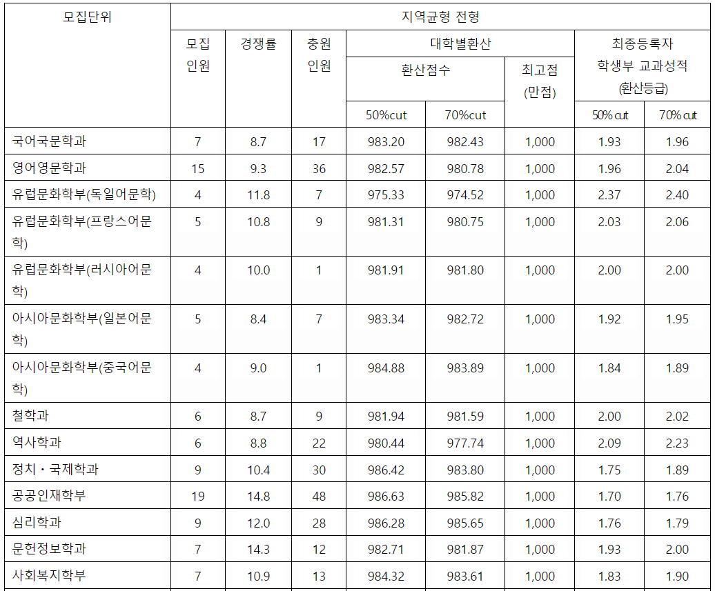2022/23 경희대 수시등급컷, 수시모집