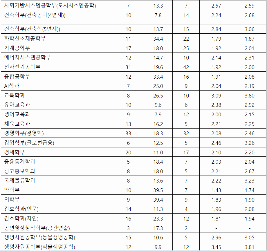 2022학년도 중앙대 서울캠퍼스 수시모집 입결입니다. 먼저 학생부교과(지역균형)부터 알아보겠습니다. 최종등록자 학생부 교과 성적 70%컷입니다. 국어국문학과 1.96, 영어영문 2.04, 역사 2.23, 정치,국제 1.89, 공공인재 1.76, 문헌정보 2.00, 사회 1.88, 화학 1.71, 수학 1.76, 기계공학 1.73, 전자전기공학 1.64, 융합공학 1.68, 교육 1.79, 유아교육 2.11, 경영학부 1.71, 경제 1.83, 약학부 1.39, 간호(자연)1.78, 시스템생명 2.21, 예술공학 4.57입니다. 학생부종합 전형에서는 국어국문 2.76, 영어영문 2.15, 철학 2.09, 유럽문화학부(러시아) 4.55, 심리 2.14, 문헌정보 2.40, 미디어커뮤니케이션 3.61, 물리 2.24, 기계공학 2.01, AI 2.19, 교육 3.80, 경제 2.20, 국제물류 3.23, 예술공학 4.05입니다.