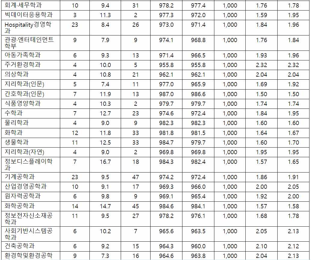 2022/23 경희대 수시등급컷, 수시모집