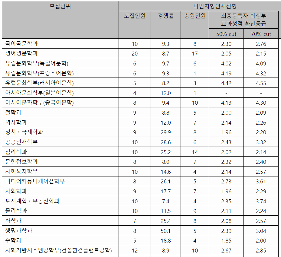 중앙대 학생부교과 수시등급컷