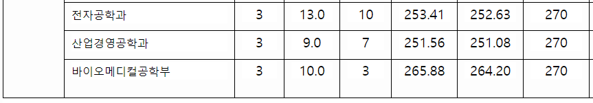 한국외국어대 학생부 교과 등급컷은 교과 성적은 공개되어 있지 않고 자체 환산 점수 50%,70%컷으로만 나와 있습니다. 최고점은 270점인데 환산점수 1등급은 270점대, 2등급은 258점, 3등급은 237점대입니다. 원점수 90점을 1등급으로 환산하는 기준으로 하게 되어 외고, 자사고 등 특목고 학생들에게 다소 유리해진 측면도 있는 것으로 분석됩니다. 서울캠퍼스를 보면 거의 260점대를 상회하는 것을 보면 교과등급으로 1등급 중반대로 추정됩니다. LD학부, LT학부 환산 점수 70%컷은 269점대로 1등급 초반으로 보입니다. 글로벌 캠퍼스는 1등급~4등급 중반대까지 다양하게 분포하며 글로벌스포츠산업학부가 263점대로 가장 높은 입결을 보이고 있습니다.