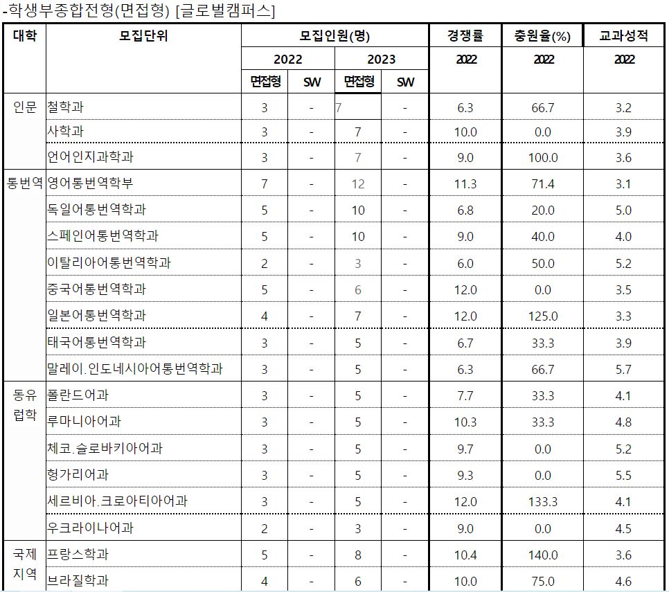 2022/2023 한국외국어대 수시등급컷, 수시모집