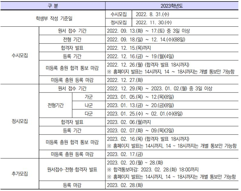 이상과 같이 2023학년도 수시모집 원서 접수 일정 및 마감 시간, 원서 접수비용에 대하여 알아 보았습니다. 수시 모집에 도움되시기를 바라겠습니다.