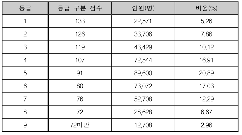 수능 영어 등급별 비율