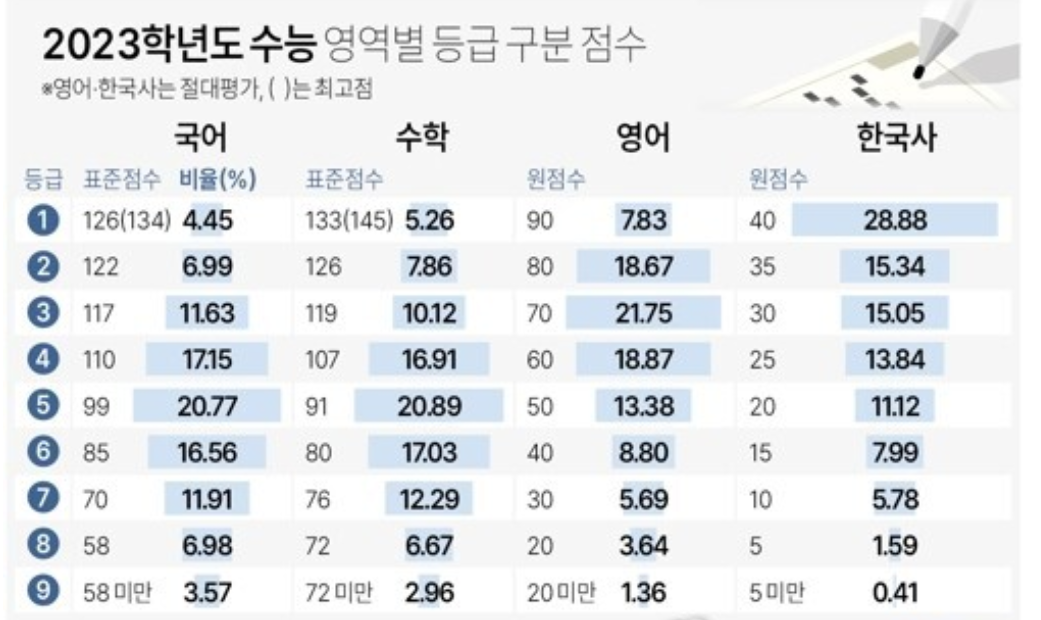 2023학년도 수능 국어, 수학 등급컷 확정, 영어, 사탐, 과탐 등급컷 알아보기