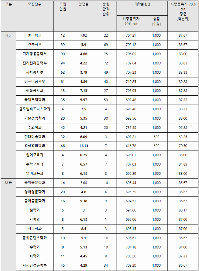 2023/24 홍익대 정시등급컷, 정시배치표 참고 지원점수