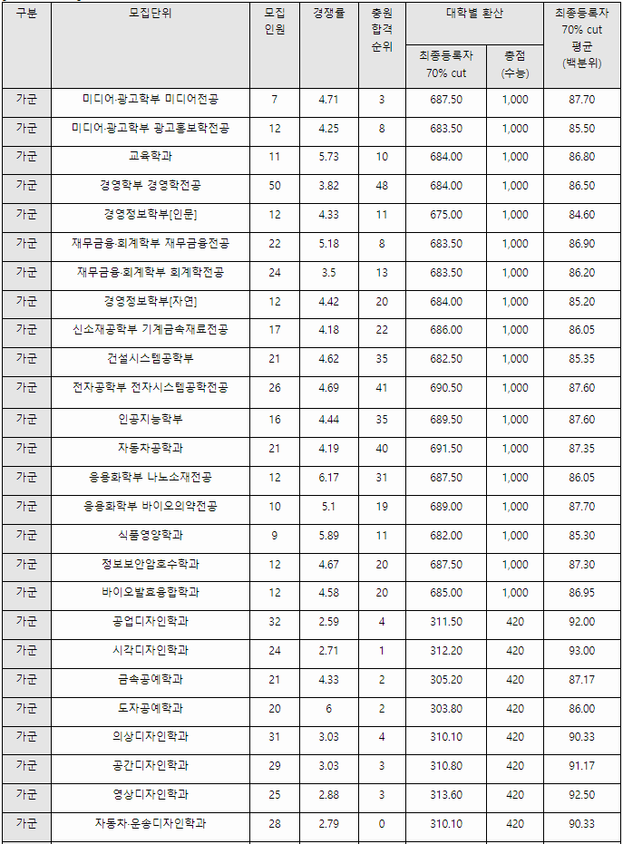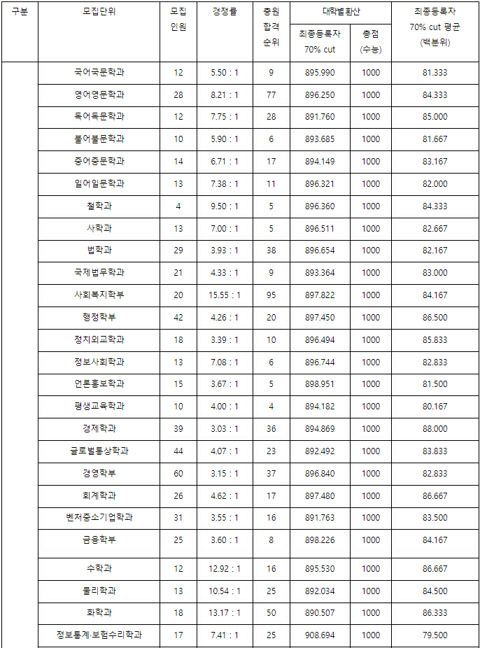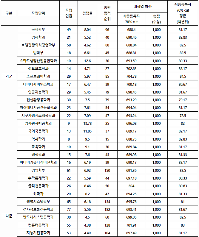 2023/24 국민대 정시등급컷, 정시배치표 참고 지원점수