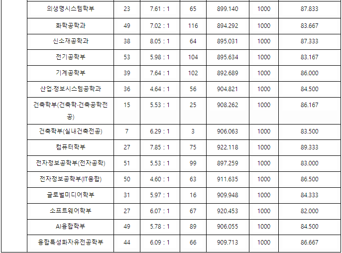 2023/24 숭실대 정시등급컷, 정시배치표 참고 지원점수