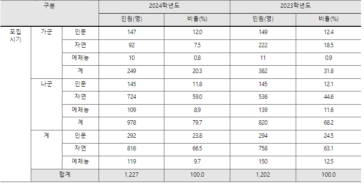 2024 정시모집으로 세종대는 정원내 기준 가/나군 1096명을 모집하며, 가군 227명, 나군 869명 입니다. 국어, 수학 표준점수, 영어 등급별 점수 반영합니다. 인문 국30%+수30%+영20%+탐20%, 창의소프트학부를 제외한 자연계열 국20%+수(미/기)35%+영20%+탐(과)25%로 반영합니다. 원서접수기간은 1월3일 오전10시부터 6일 오후5시까지입니다.