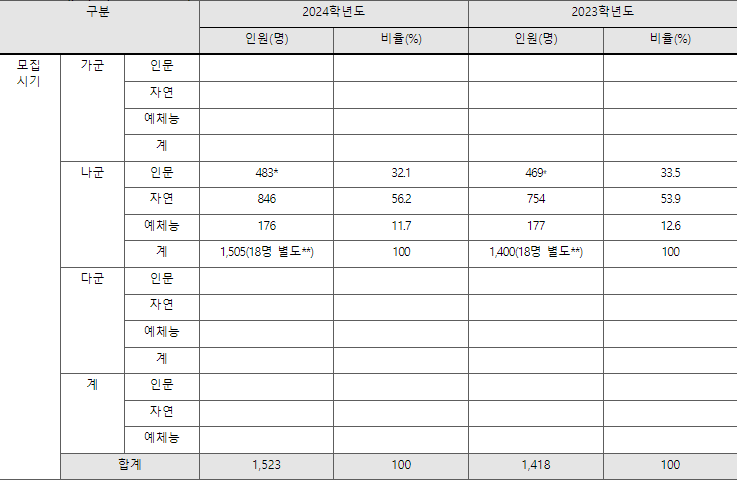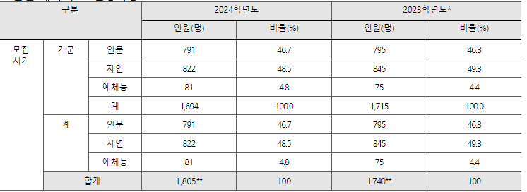 고려대도 연세대와 같은 가군 모집군입니다. 동일군에 있기 때문에 고려대 지원자는 연세대에 지원할 수 없습니다. 반대의 경우도 마찬가지입니다. 고려대 2024년도 정시모집 선발인원은 1,118명입니다. [수능위주] 교과우수전형 440명, [수능위주] 농어촌전형 118명, [수능위주] 사회배려전형 68명 등입니다. 국어, 수학은 표준점수, 탐구영역은 대학자체 변환점수를 적용합니다.