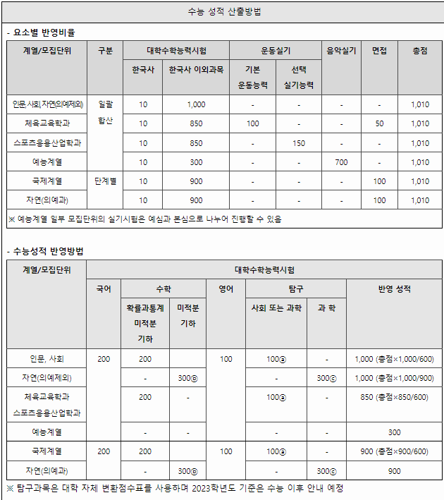2023/24 연세대 정시등급컷, 정시배치표 참고 지원점수