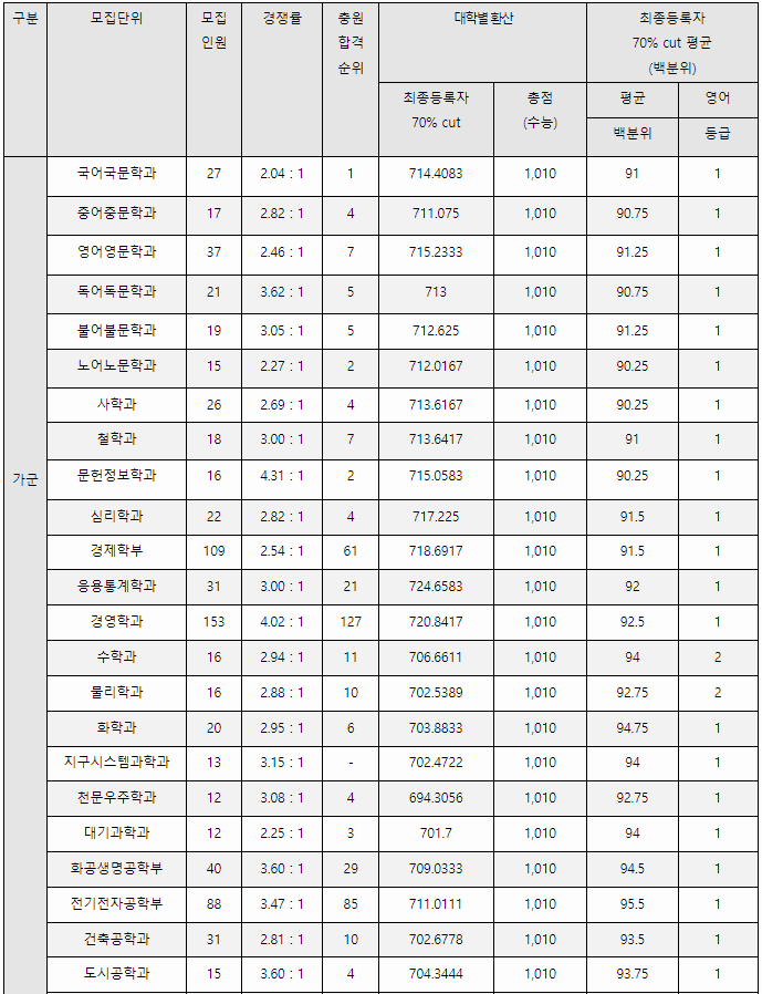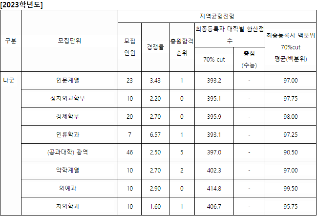 2023/24 서울대 정시등급컷, 정시배치표 참고 지원점수