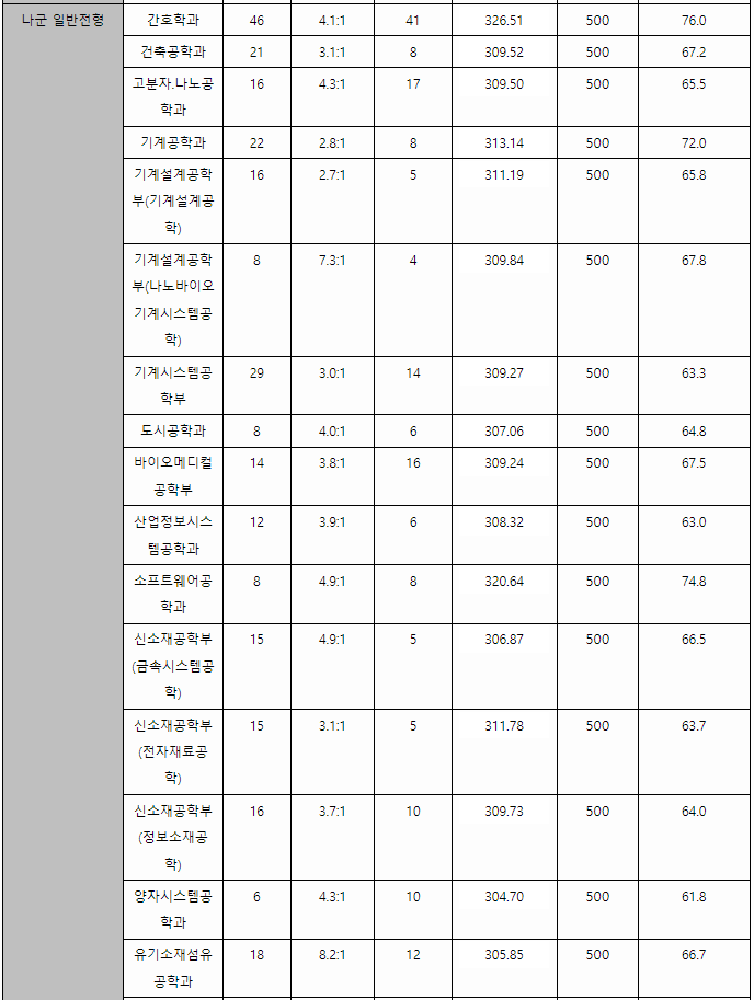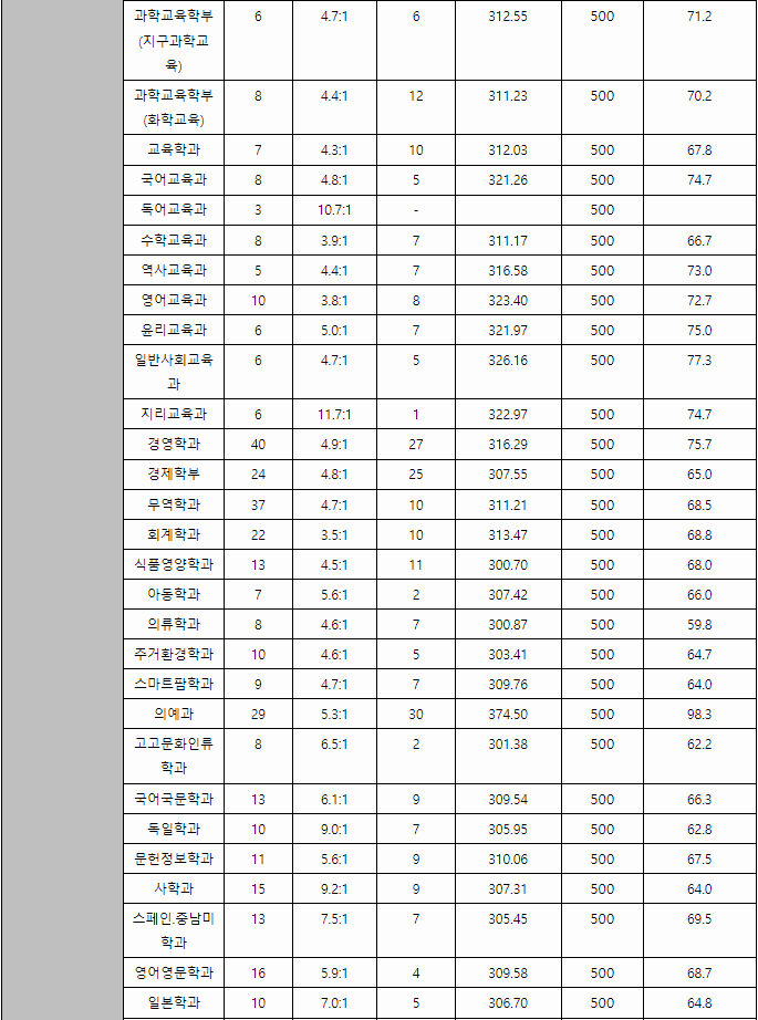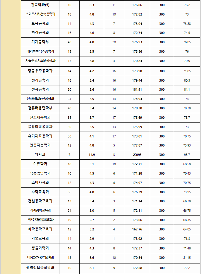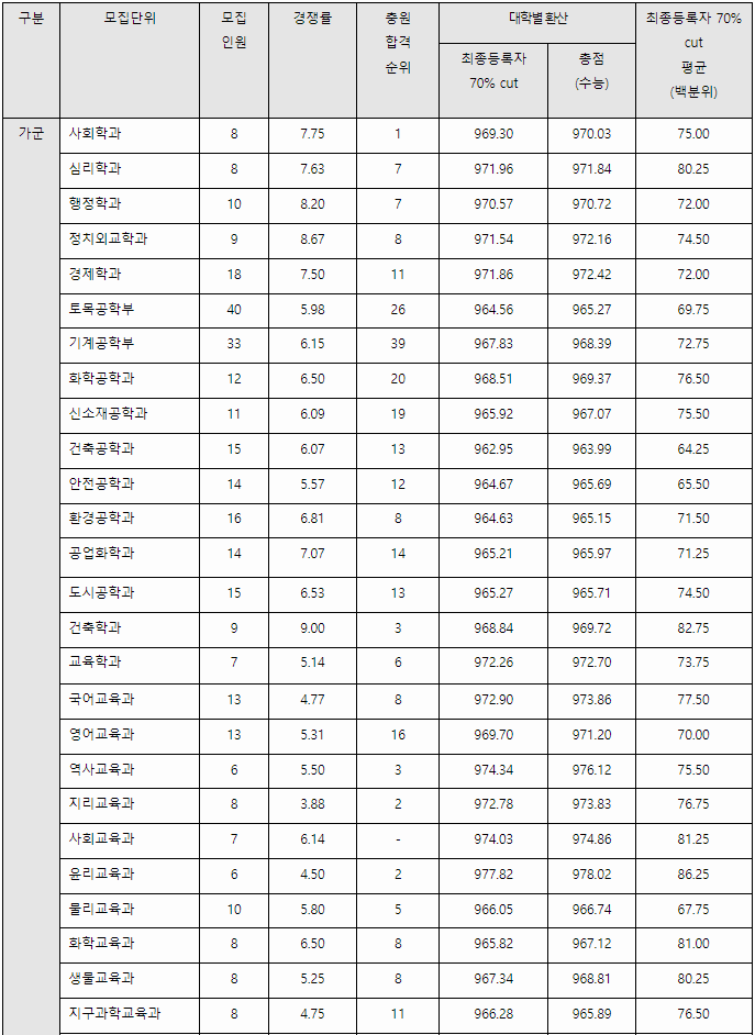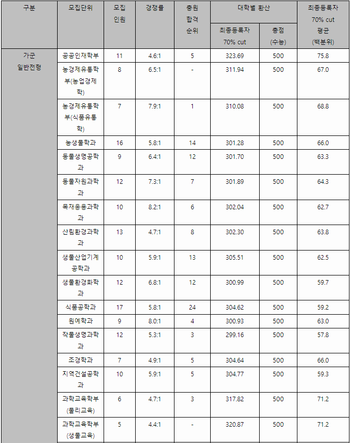 2023/24 충남대 정시등급컷, 정시배치표 참고 지원점수