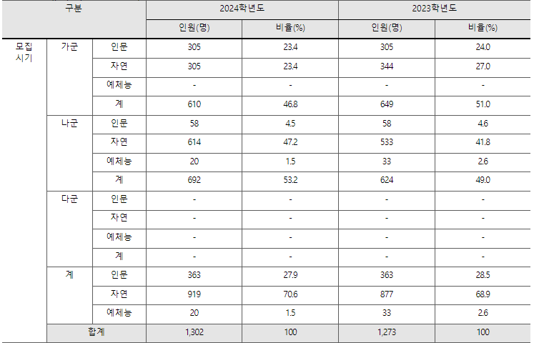 전북대는 가,나군 모집으로 인문 363, 자연 919명 등 1,302명을 선발할 예정입니다. 국어, 수학은 표준점수, 탐구영역은 백분위 활용 변환표준점수, 영어, 한국사는 등급별 변환점수를 적용합니다.