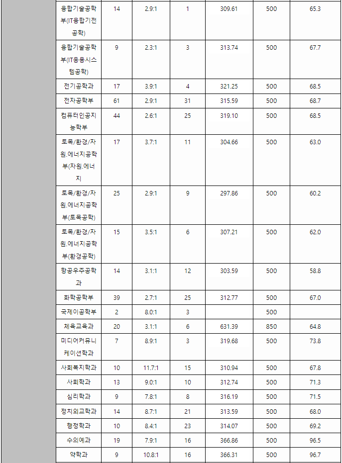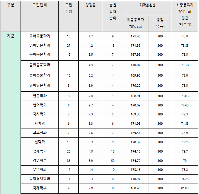 2023/24 충남대 정시등급컷, 정시배치표 참고 지원점수