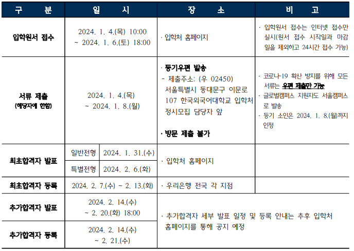 2023/24 한국외국어대 글로벌캠퍼스 정시등급컷, 정시배치표 참고 지원점수