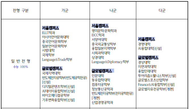 2023/24 한국외국어대 글로벌캠퍼스 정시등급컷, 정시배치표 참고 지원점수