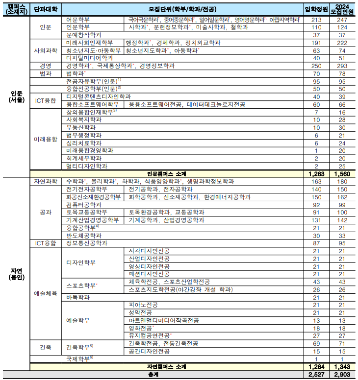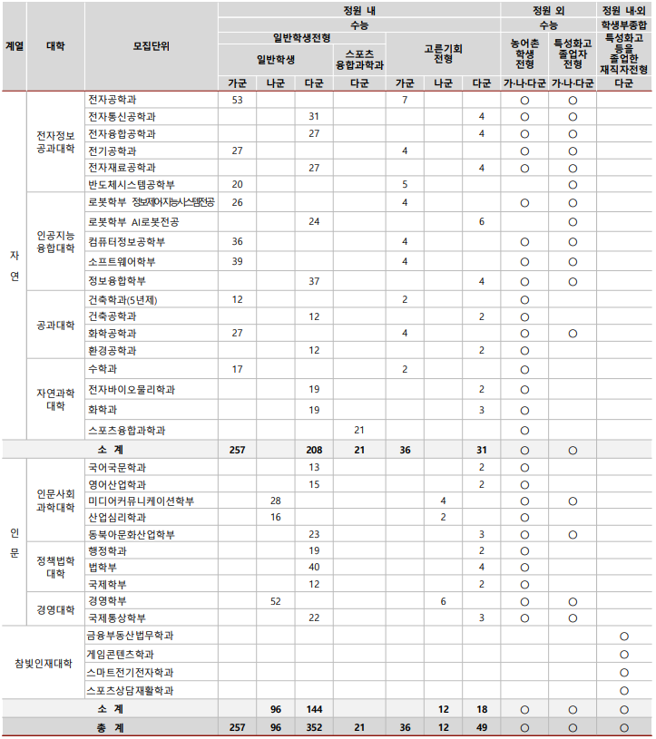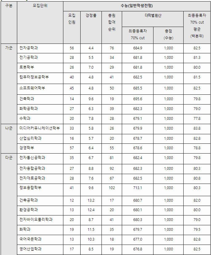 2023/24 광운대 정시등급컷, 정시배치표 참고 지원점수