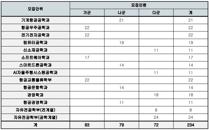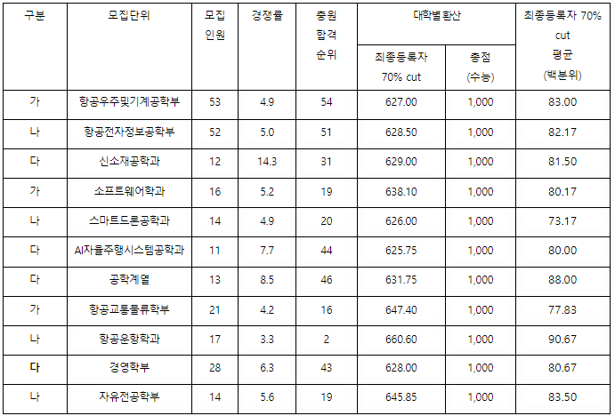 2023/24 항공대 정시등급컷, 정시배치표 참고 지원점수