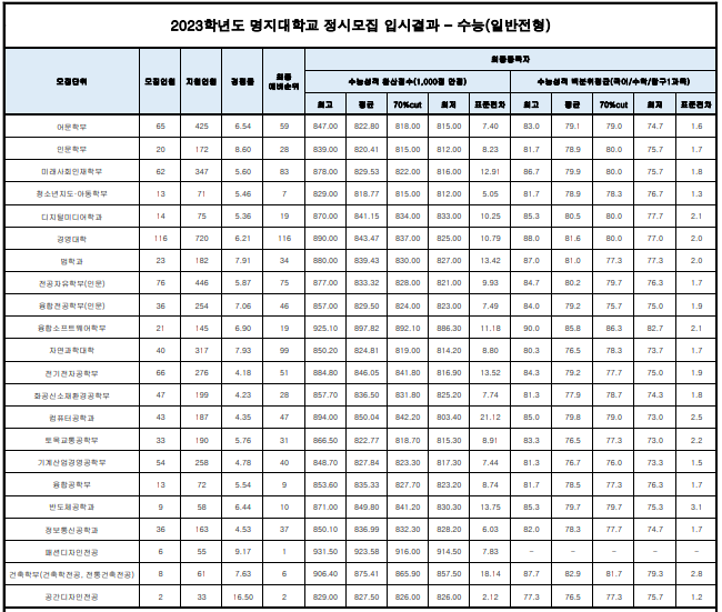2023/24 명지대 정시등급컷, 정시배치표 참고 지원점수