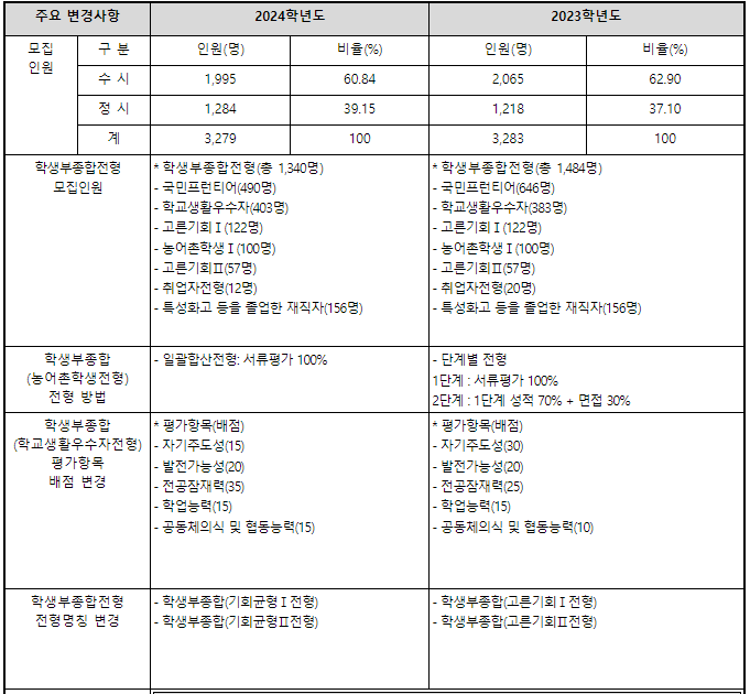 2023/24 국민대, 숭실대 수시 등급컷, 수시 모집 정보