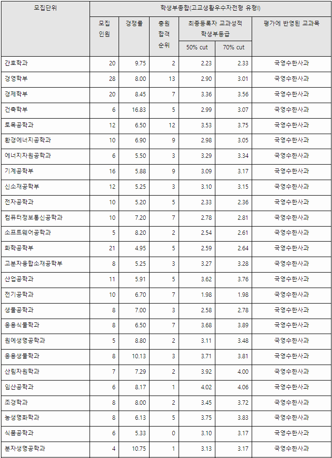 2023/24 부산대, 경북대, 전남대 수시 등급컷, 수시 모집 정보