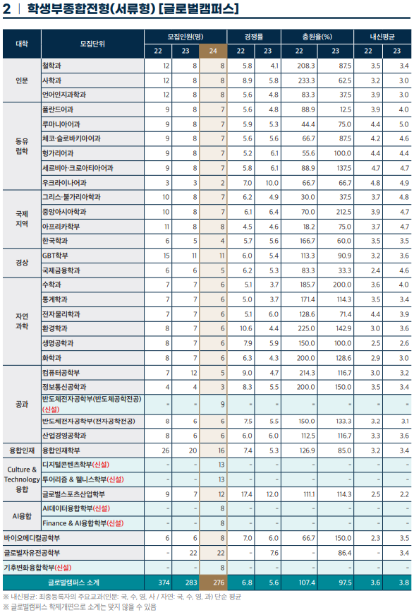 한국외국어대(서울, 글로벌캠퍼스) 수시 등급컷, 수시모집 정보