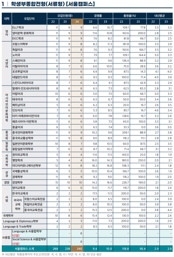 2023/24 한국외국어대(서울, 글로벌 캠퍼스), 서울시립대 수시 등급컷, 수시 모집 정보