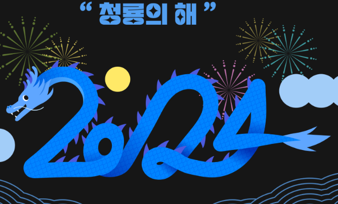 2024년은 갑진년(甲辰年)으로 육십갑자에서 41번째에 해당하는 해입니다. 특히 갑진년은 푸른 색을 뜻하는 갑이 들어가 있어 청룡의 해로 불리기도 합니다. 왠지 푸른 색이 도는 청룡은 안그래도 상상속의 존재인 용이 더 신비하게 느껴집니다.