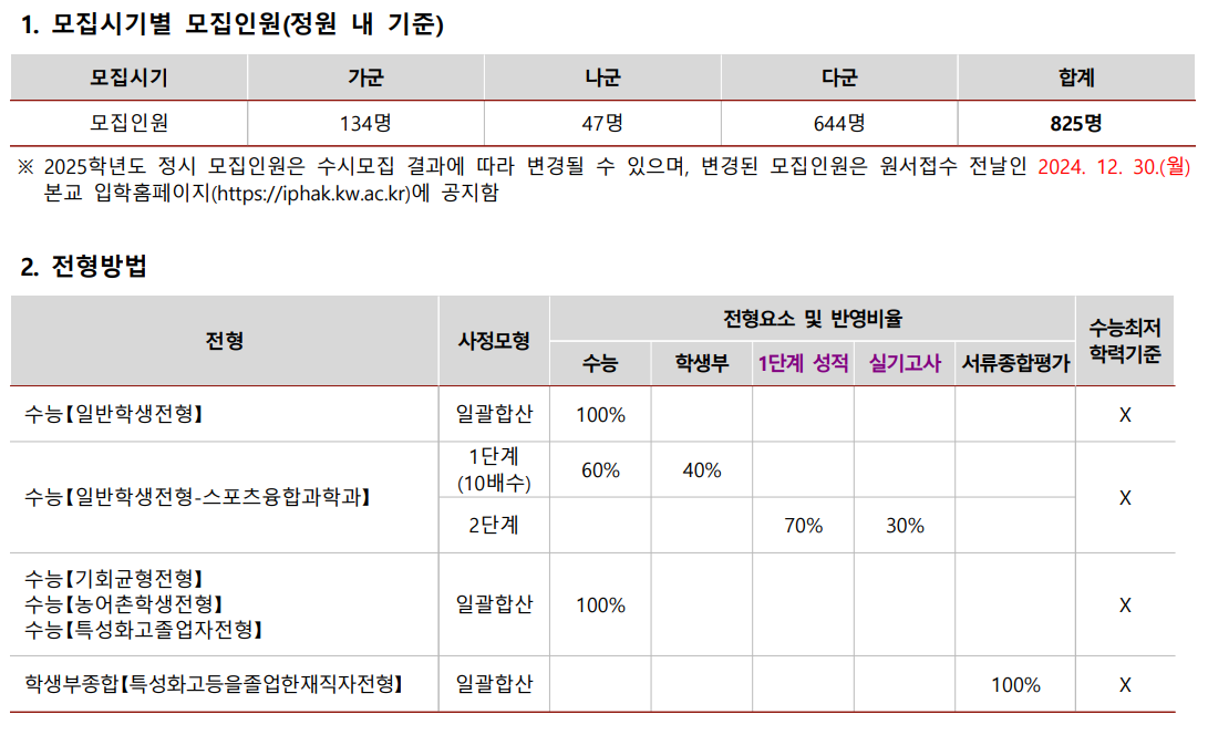 2024/2025 광운대 정시등급컷, 정시배치표 지원 예상점수
