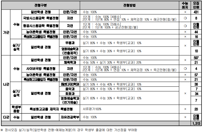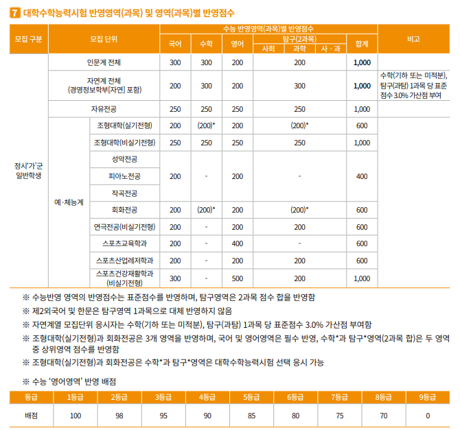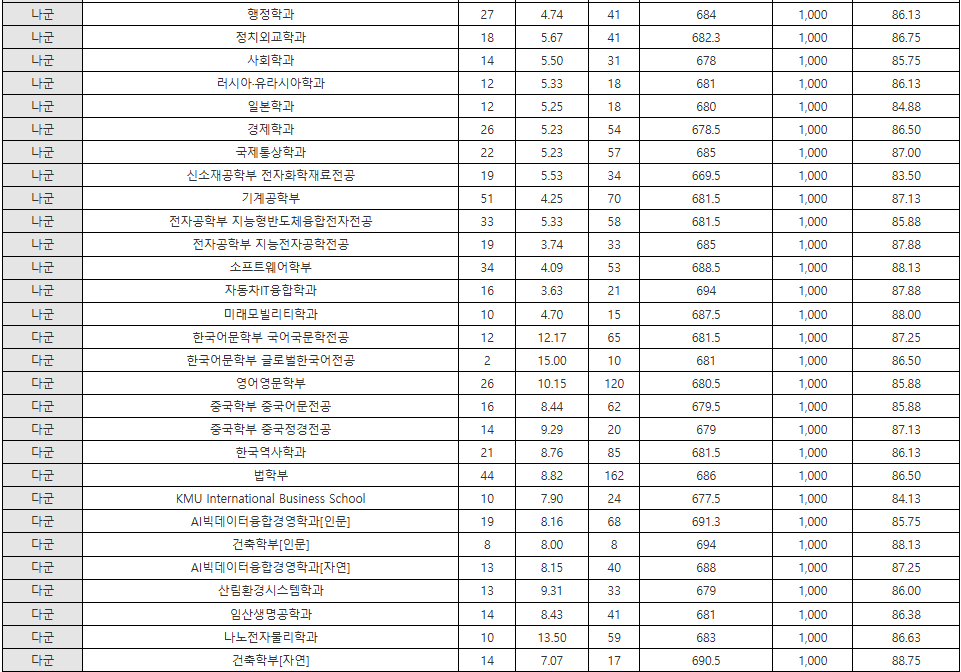 2024/2025 국민대 정시등급컷, 정시배치표 참고 점수