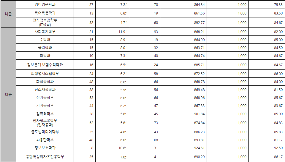 2024/2025 숭실대 정시등급컷, 정시배치표 참고 점수
