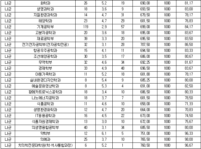 이상과 같이 지방거점 국립대인 부산대, 경북대, 전남대 주요 학과 정시등급컷, 정시 배치 예상점수였습니다.