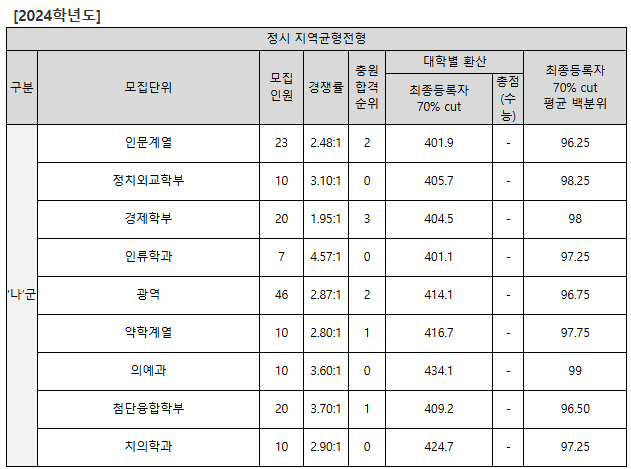 2023/24 고려대 정시등급컷, 정시배치표 참고 지원점수