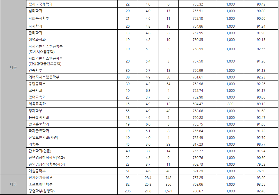 2024/2025 중앙대 정시등급컷, 정시배치표 참고 지원점수