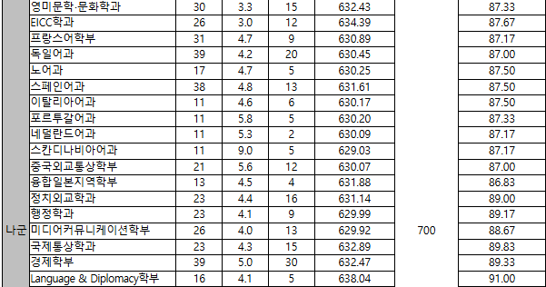 2024/2025 한국외국어대 정시등급컷, 정시배치표 참고 지원점수