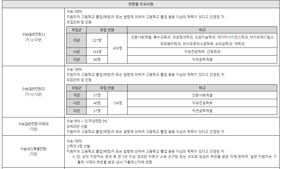 원서접수는 2025년 12월 29일부터 31일까지 진행되며, 수시 이월이 반영된 최종 모집인원은 12월 26일에 공개될 예정입니다. 전체적으로 수능 영향력이 확실한 전형 구조이므로 지원자는 자신의 영역별 강점을 명확히 파악한 뒤 군별 조합을 세밀하게 구성해야 합니다.