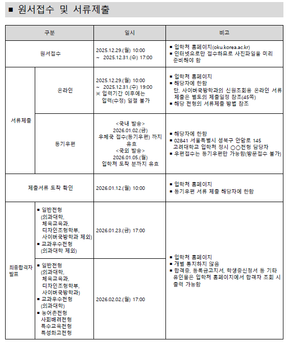 2025/2026 고려대 정시 등급컷, 정시모집 정보