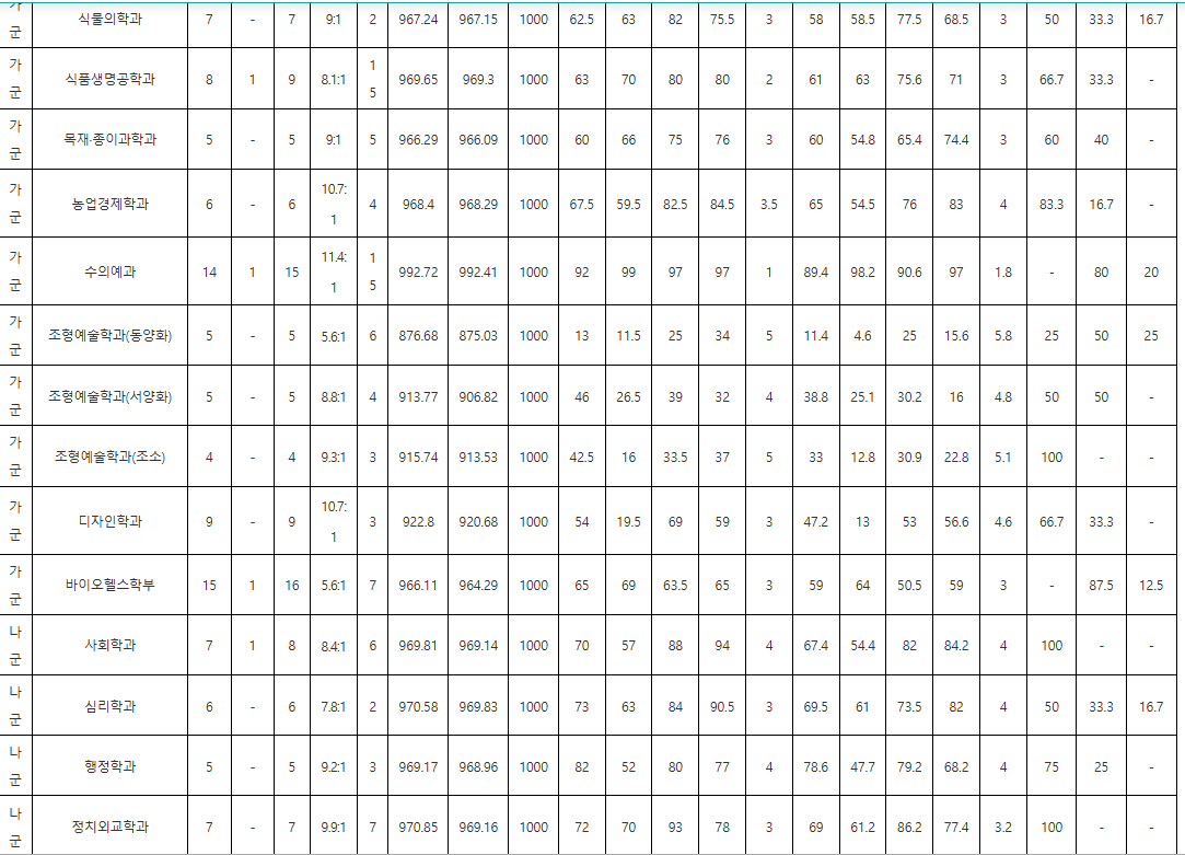 충북대학교 정시 지원을 준비하는 수험생이라면 먼저 자신의 점수가 속한 위치를 정확히 파악하는 것이 중요합니다. 인문계열은 점수대가 비교적 고르게 형성되어 있기 때문에, 소폭의 점수 차이로도 합격 가능성이 달라질 수 있어 지원 학과의 최근 2~3개년 컷을 함께 비교하는 것이 유리합니다. 자연계열은 의학·간호·공학 계열의 상위 학과가 평균을 크게 끌어올리는 구조이므로, 본인의 성적이 상위권인지 중위권인지에 따라 선택 전략이 명확히 구분됩니다. 특히 자연계 지원자는 수학 선택과 탐구 조합이 학과 기준과 일치하는지 반드시 확인해야 합니다. 중상위권은 공학·자연과학·농생명 계열에서 충원 변동 폭이 큰 학과를 중심으로 안정 지원을 고려할 수 있으며, 하위권 학과는 다군 또는 예체능·자율전공계열의 컷 흐름을 활용한 교차 전략도 효과적입니다. 전체적으로는 군별 분할 지원을 통해 합격 안정성과 상향 가능성을 동시에 확보하는 것이 가장 합리적인 전략입니다.