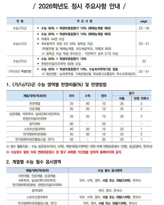 2025/2026 한양대 정시 등급컷, 정시모집 정보