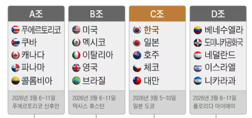 2026 WBC 한국 대표팀 일정, 조편성, 중계 방송사