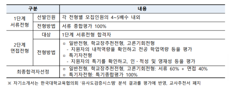 지스트는 아직 2022년도 입시요강을 발표하지는 않았는데 이미 입학전형 기본계획은 공지한 바 있습니다. 수시모집으로는 175명 내외, 정시모집으로 25명 등 200명을 선발할 계획입니다. 수시모집에서는 학생부 종합 서류 위주인 일반 전형으로 100명, 학교장 추천 전형 35명, 고른 기회 25명, 실기 위주인 특기자 전형은 15명입니다. 학교장 추천 전형은 소속 고등학교장의 추천을 받은 국내 일반·자율·특성화고등학교 3학년 재학생이 대상이며 특목고, 영재학교 출신은 지원이 안됩니다. 학교당 2명까지 가능합니다. 일반 전형에서는 1단계 서류 평가 100%이며 2단계 서류 60%, 면접 40% 비중으로 선발합니다. 공통 제출서류는 학교생활기록부, 자기소개서입니다. 수학과 과학 과목을 특출나게 잘하는 학생이라면 유리한 점수를 받을 수 있는 해당 과목에 대한 중요도가 매우 높은 대학입니다. 영어로 수업이 진행되는 만큼 영어도 상당히 잘해야 합니다.