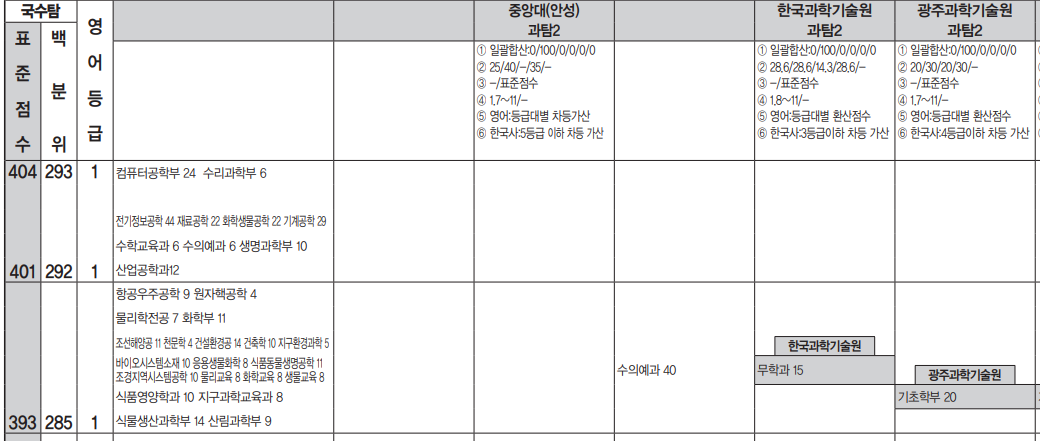 정시 배치표 예상으로 보면 표준점수는 396점대로 서울대 자연계 하위권 대학 점수대로 예상되며 백분위도 96 이상입니다. 거의 카이스트와 비슷하거나 약간 낮은 점수대인데 모든 과학기술원들이 비슷한 점수대입니다. 지스트 2021 정시 모집 경쟁률은 44.85대1이었습니다. 모집 인원이 줄어 들면서 경쟁률이 대폭 증가했던 것으로 보입니다.