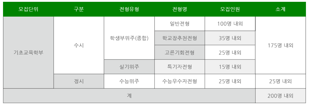 지스트는 200명 내외의 신입생을 선발합니다. 수시 모집이 대부분이며 정시모집으로도 뽑고 있습니다. 수시모집으로는 가장 많은 신입생을 선발하는 일반전형, 학교장 추천 전형, 고른기회전형, 특기자 전형이 있으며 정시 모집은 수능 성적 100%로 선발합니다. 2021년도에는 정시 모집으로 20명만 선발했습니다.