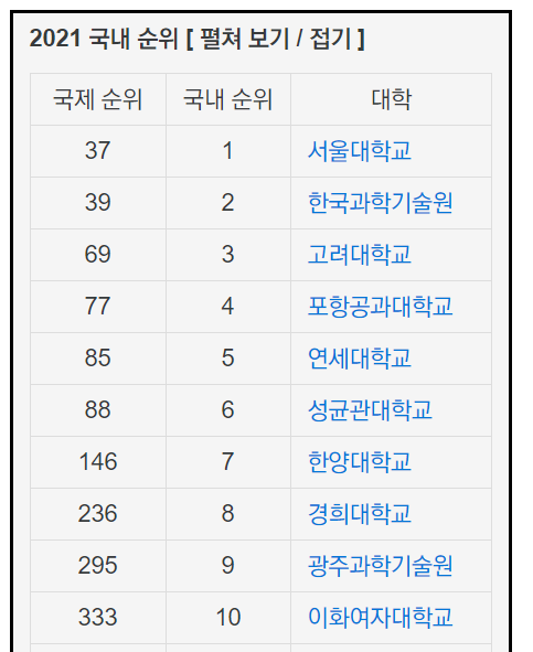 연구중심의 이공계 대학을 지향하는 대학으로 기초 학문을 중요시하고 있습니다. 해외 평가 기관인 QS와 THE에서 좋은 평가를 받고 있는데 QS에서는 가장 최근 자료인 2021년 순위에서 한국 대학 9위, 과기원에서는 카이스트의 뒤를 이어 2위에 올랐습니다. 세계 순위는 295위였습니다. 굳이 비교를 하자면 서성한(서강대, 성균관대, 한양대) 라인과 동급이거나 약간 높은 수준입니다. QS, THE는 설립 50년 미만 대학은 별도 평가를 하는데 여기에서도 높은 평가를 받아 QS 국내 3위, THE 국내 4위를 기록했습니다.