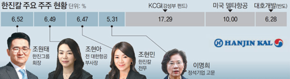 일반적인 경우라면 내부에서의 갈등과 다툼이 외부로 나오지 않는 것일 텐데 한진 그룹 같은 경우는 이명희씨, 조원태 회장, 조현아, 조현민 등 4인의 지분이 엇비슷한 상황에서 볼 수 있듯이 누구 하나 완벽히 경영권 장악을 하지 못하고 있는 상태로 서로 다툼을 벌이고 이 와중에 이런 갈등이 언론을 통하여 노출되고 있는 것입니다. 즉 누군가는 상대에게 불리한 여건을 조성하려는 의도도 있어 보입니다. 바꿔 말하면 불안정한 경영권은 누구에게나 기회를 노릴 수도 있다는 기대감을 가지고 있다는 얘기도 될 수 있겠습니다. 과연 누가 최후의 승자가 될 지 마치 왕좌의 게임같은 드라마를 보는 듯한 장면들을 보여주고 있습니다.