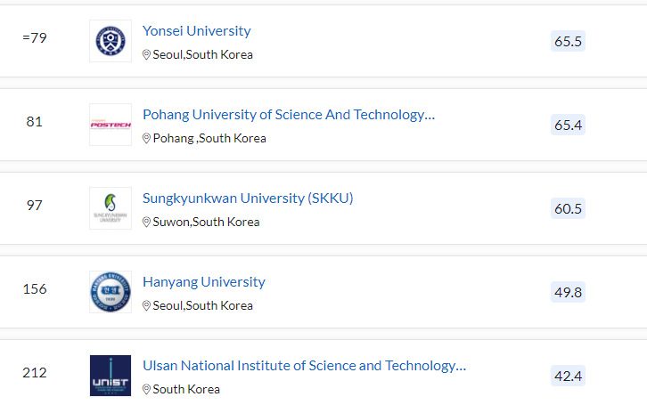 이상과 같이 세계 대학 평가 기관인 THE, QS에서 발표한 2022 세계 대학 순위와 한국 대학 순위를 살펴보았습니다.