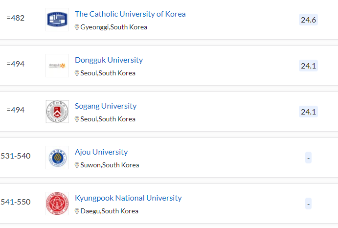 대학 선택을 위한 자료는 차고 넘치는 세상입니다. 본인이 원하는 대학을 가고 싶어도 수능 성적, 고교 교과 성적, 학교생활 기록부 등 여러 조건이 충족되어야 상위권 대학으로 갈 수 있는 만큼 성적 관리는 매우 중요합니다. 같은 조건이라면 원하는 대학을 선택하여야 하는데 평가 순위에서 좋은 대학으로의 진학을 누구나 원할 것입니다. 세계적으로 유명한 글로벌 대학 평가 기관인 THE, QS에서는 매년 세계 대학 평가 순위를 선정, 발표하고 있습니다. 한국 대학들에 대한 정보와 평가 순위도 볼 수 있어 도움이 됩니다.