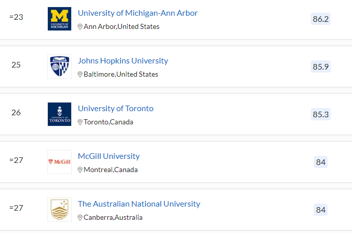 대학 평가 기관인 THE에서는 세계 대학 랭킹, 대학영향력, 미국, 일본 대학 랭킹, 공학, 의학, 인문, 사회과학 등 과목별 대학 순위입니다. QS에서는 세계 대학 순위, 과목별 순위, MBA랭킹, 졸업생 취업 순위, 대륙별, 국가별 순위도 함께 발표합니다.