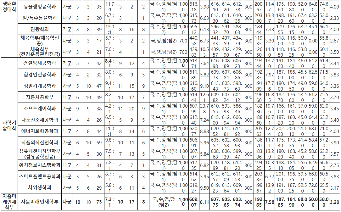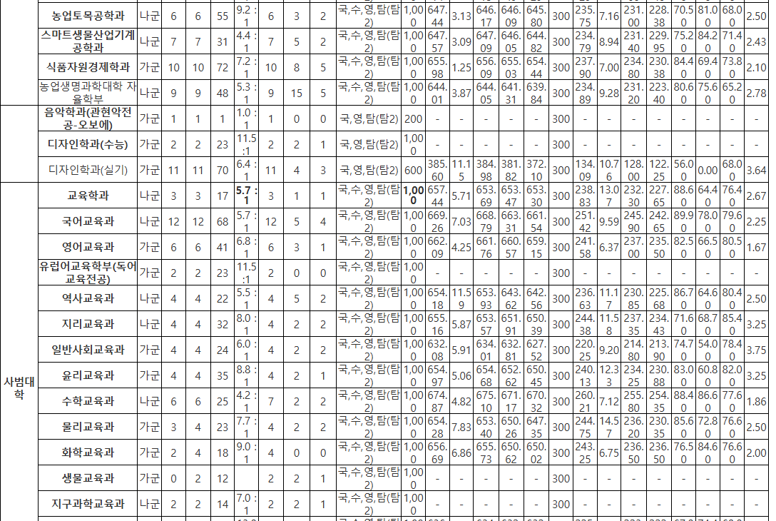2025학년도 경북대학교 정시모집 결과는 계열별·학과별 격차가 크게 벌어진 한 해였습니다. 의·치·수·약 계열은 최상위권 학생들이 집중되며 95점대 이상의 절대적인 우위를 보였고, 자연계에서는 컴퓨터·전자·IT 계열의 선호도가 더욱 강하게 나타났습니다. 반면 농생명·생태·과기대 일부 학과는 50~70점대 폭넓은 분포를 보이며 자연계 내부 편차가 확대되었습니다. 인문계는 전체적으로 안정적인 75~85점대에서 형성되며 비교적 일정한 합격 패턴을 유지했습니다. 영어 영향력은 전년도에 이어 축소되었고, 국어·수학·탐구의 조합이 합격선 형성의 핵심 요소로 작용한 것이 특징입니다.
